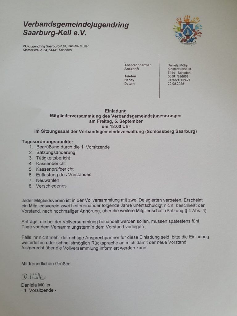 Willkommen beim VGJR Saarburg-Kell e.V. Herzlich willkommen auf der Internetseite des Verbandsgemeindejugendring Saarburg-Kell e.V.! Der Vereinigung aller Vereine, die in der Verbandsgemeinde Saarburg-Kell Jugendarbeit betreiben Hier finden Sie zahlreiche Informationen zu unserem Verein. Da wir auch bei aktuellen Anlässen hier immer wieder darauf hinweisen, freuen wir uns auf Ihren regelmäßigen Seitenbesuch. Bei Fragen zu uns, unserer Arbeit und unserem Angebot können Sie gerne schnell und einfach an das Vereinssekretariat wenden.